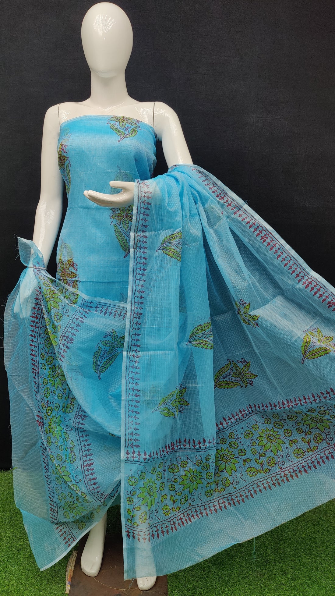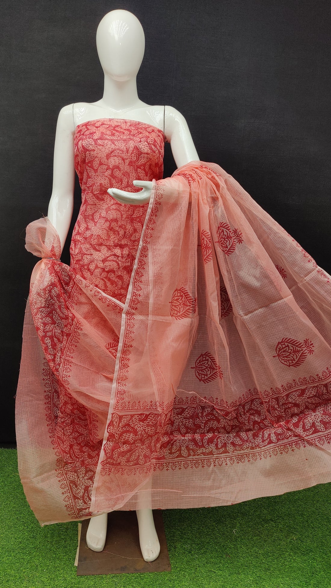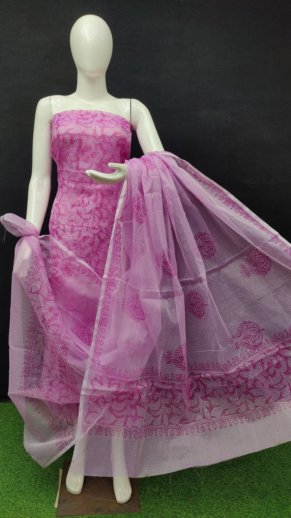 Kota Doria Cotton Block Printed Dress Material 2.5 meter Top 2.5 meter Dupatta 2.5 meter...