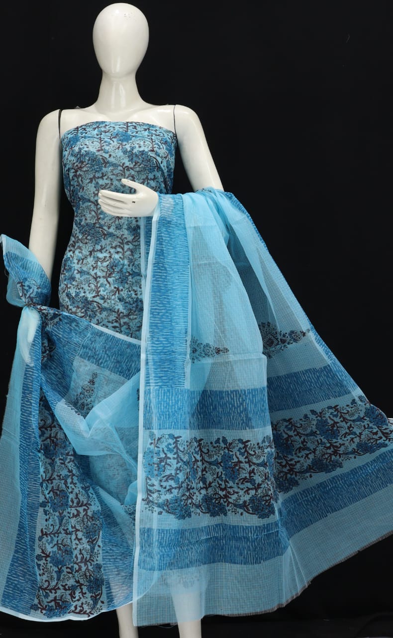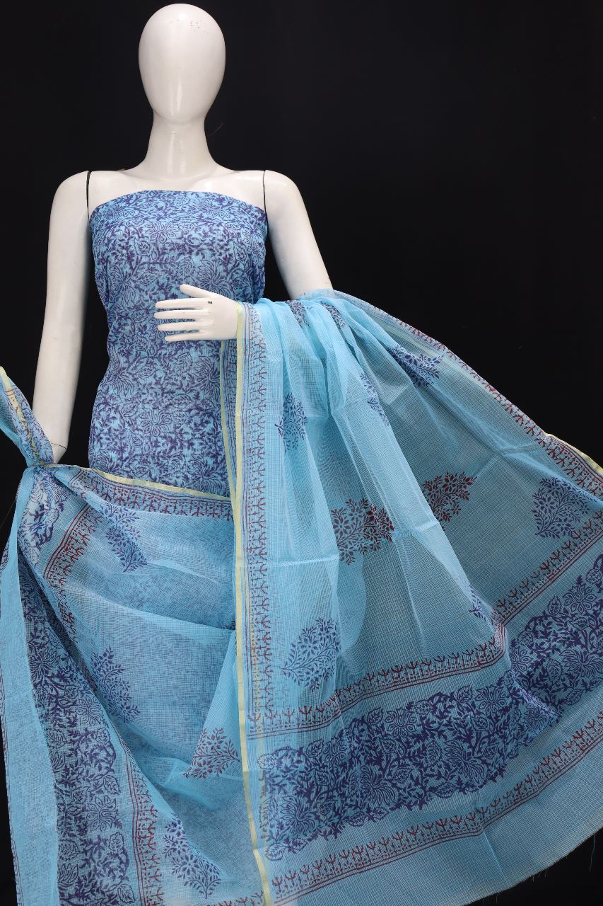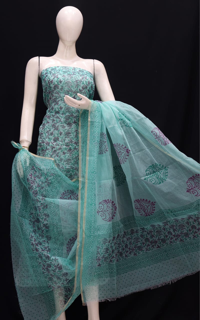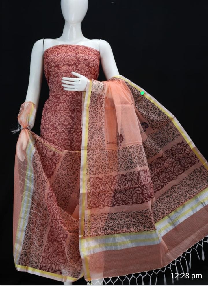 Kota Doria Cotton Block Printed Dress Material 2.5 meter Top 2.5 meter Dupatta 2.5 meter...