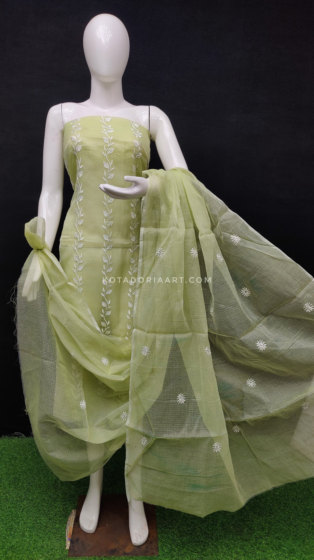 Pista Kota Doria Cotton Embroidery Work Dress Material