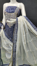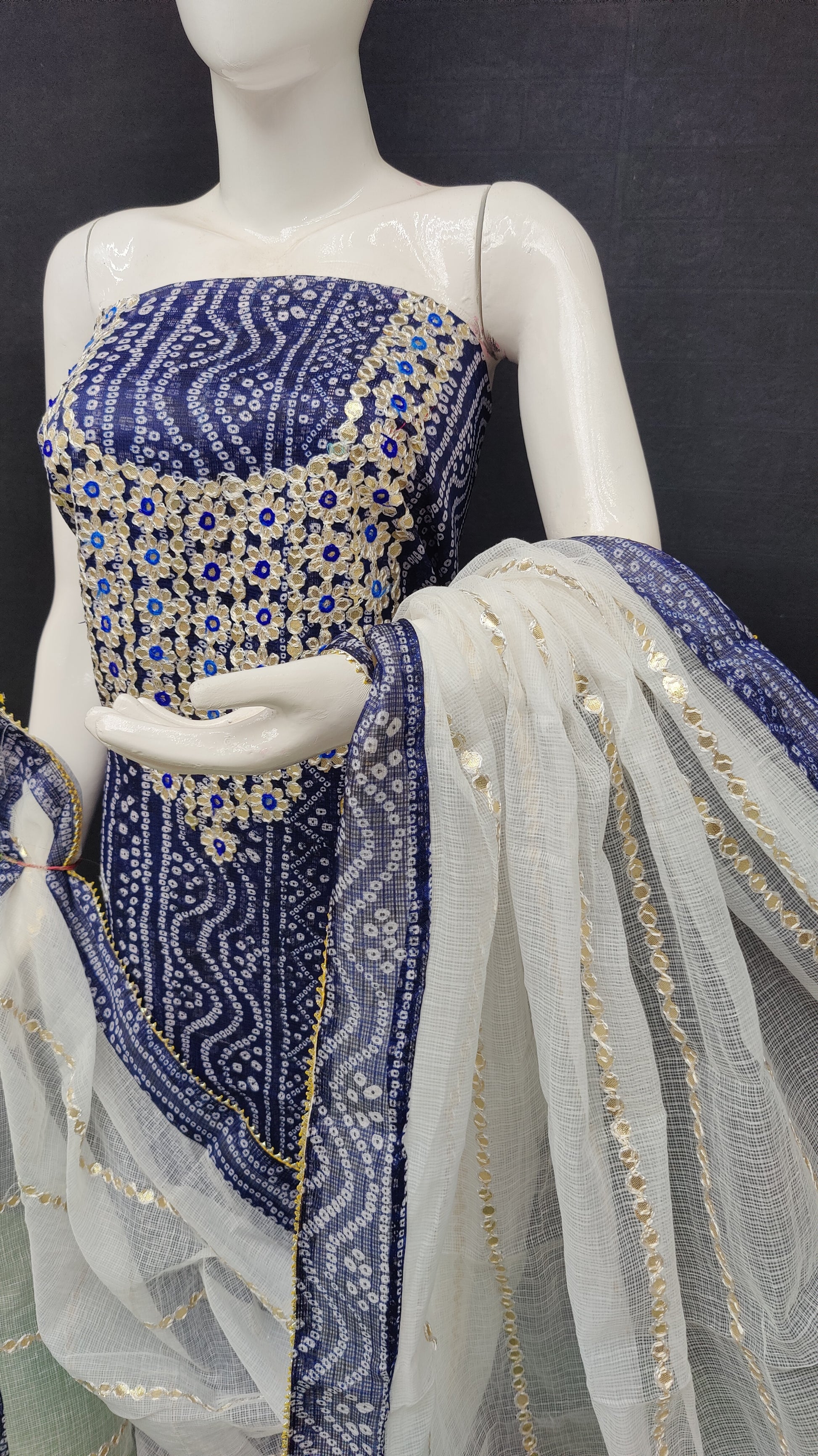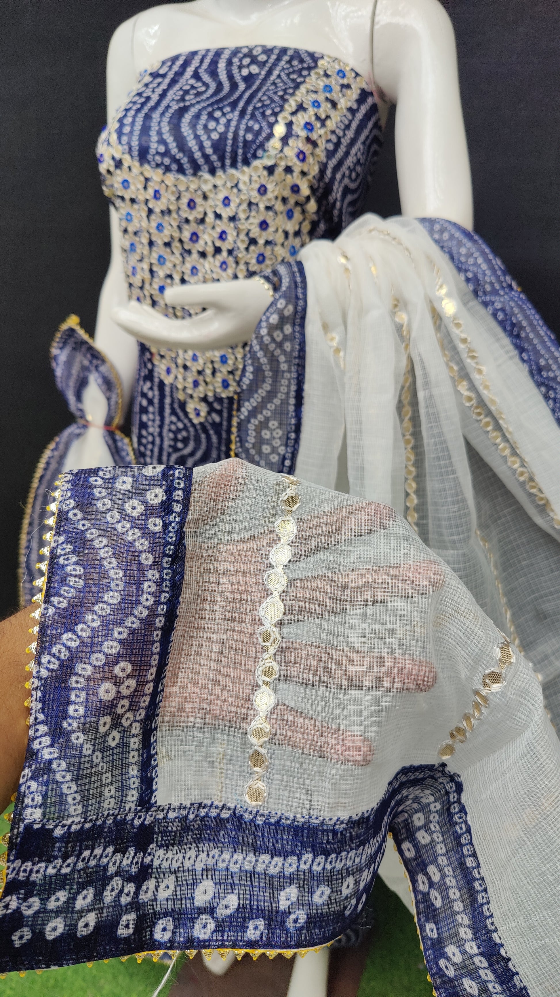 Blue Bandhej Kota Doria Cotton Gota-Patti Work Dress Material