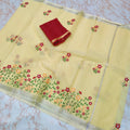 Yellow Cotton Kota Doria Embroidery Work Saree With Contrast Blouse Piece