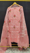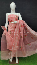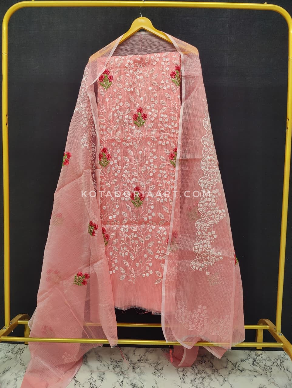 Peach Kota Doria Cotton Embroidery Work Dress Material -