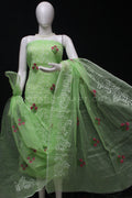 Green Kota Doria Cotton Embroidery Work Dress Material -
