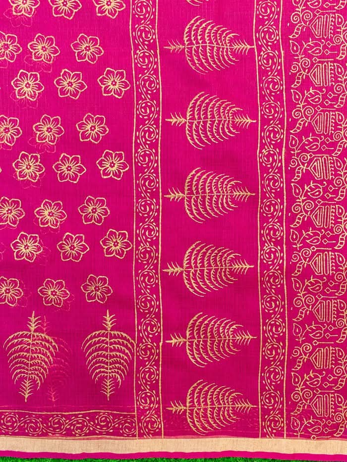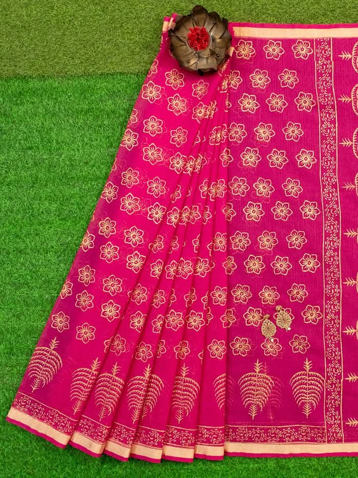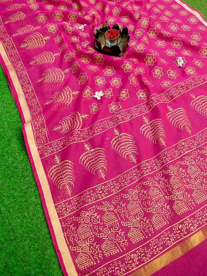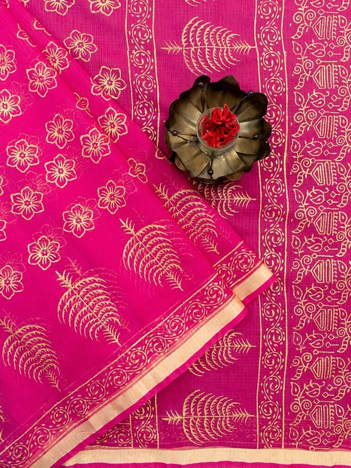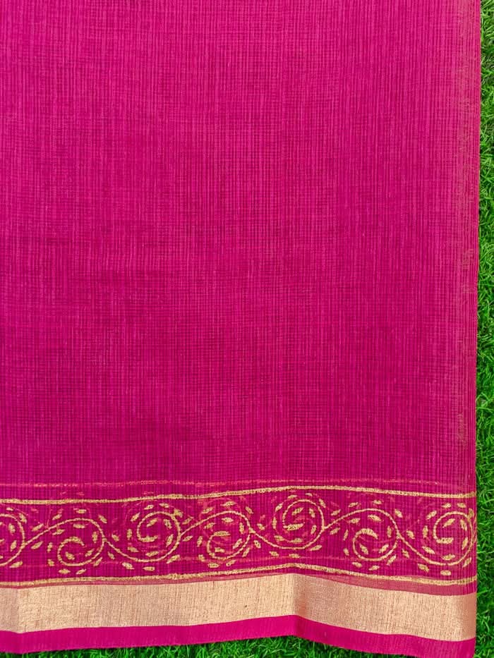 Cotton Kota Doria Block Printed Saree With Running Blouse.-Product 1