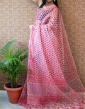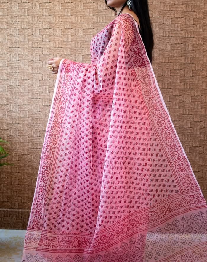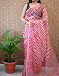 Cotton Kota Doria Block Printed Saree With Running Blouse.-Product 4