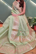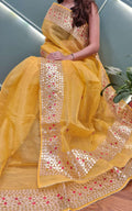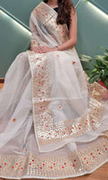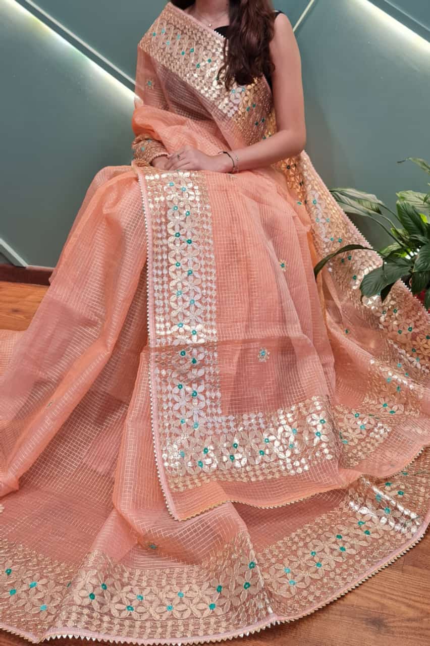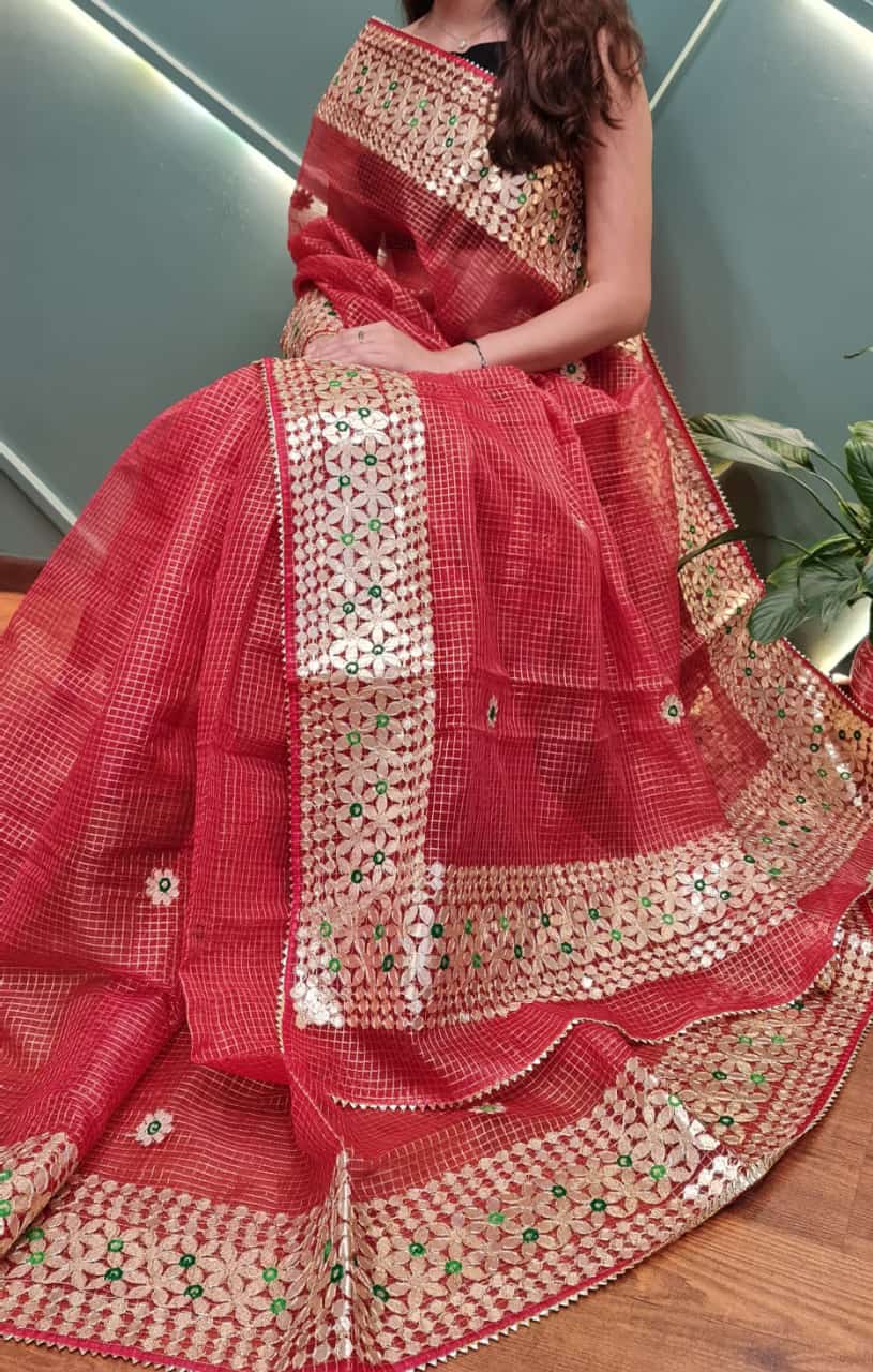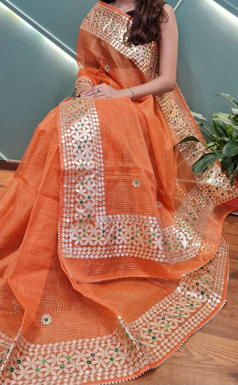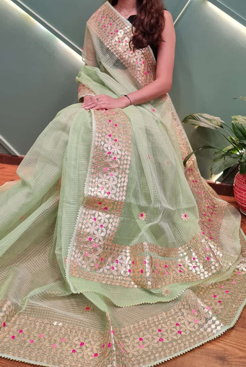 Cotton Kota Doria Gota-Patti Work Saree With Running Blouse.