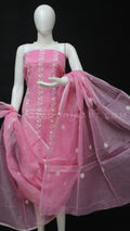 Pink Kota Doria Cotton Embroidery Work Dress Material