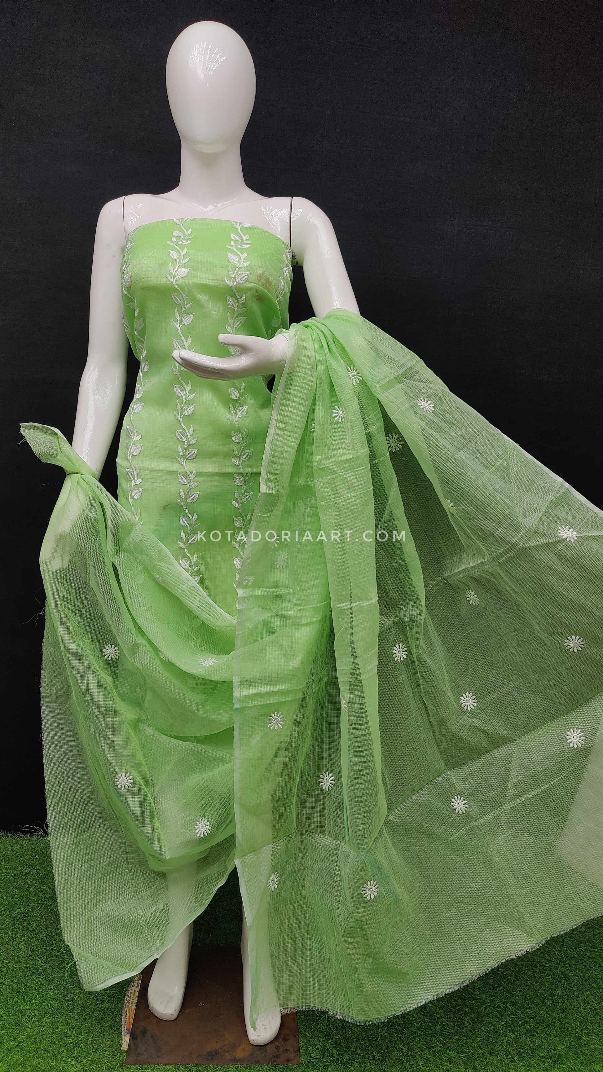 Green Kota Doria Cotton Embroidery Work Dress Material