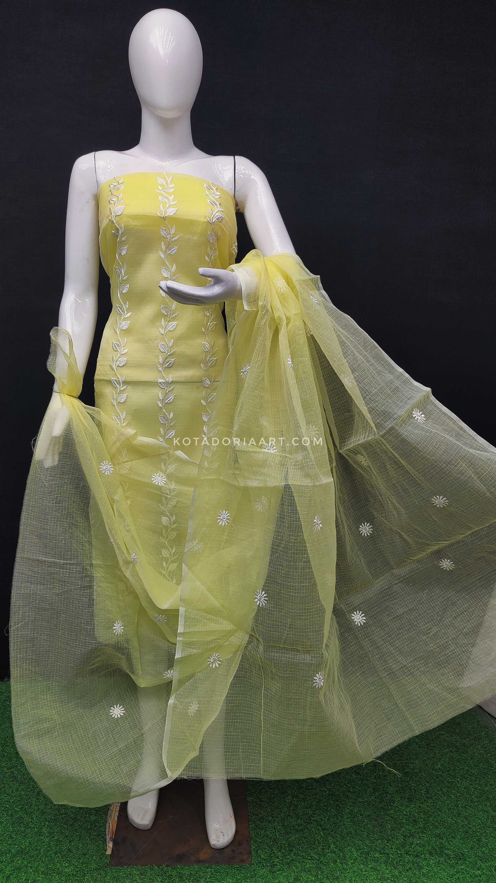 Lemon Kota Doria Cotton Embroidery Work Dress Material