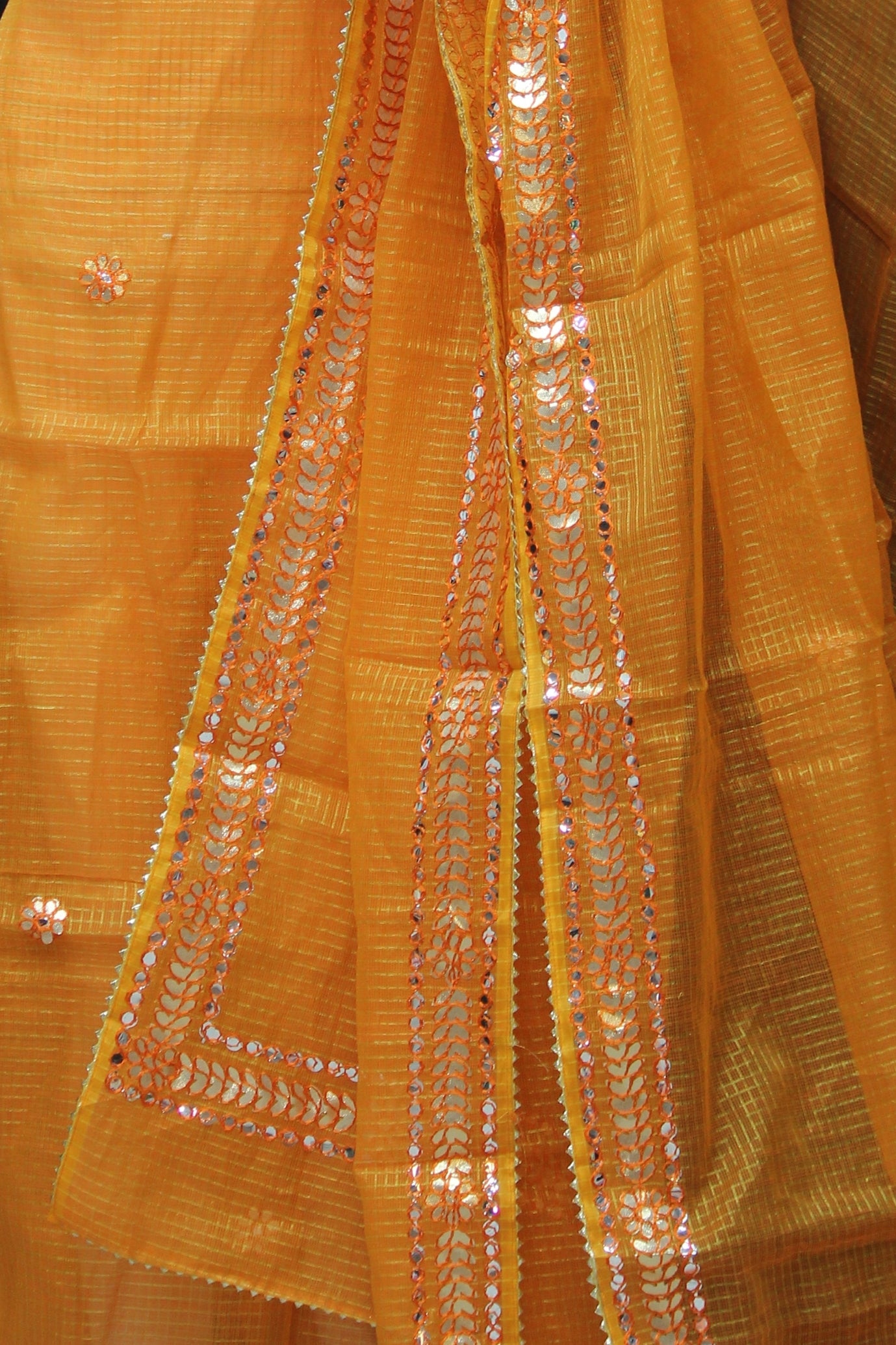 Orange Kota Doria Cotton Gota-Patti Work Dress Material with Bottom