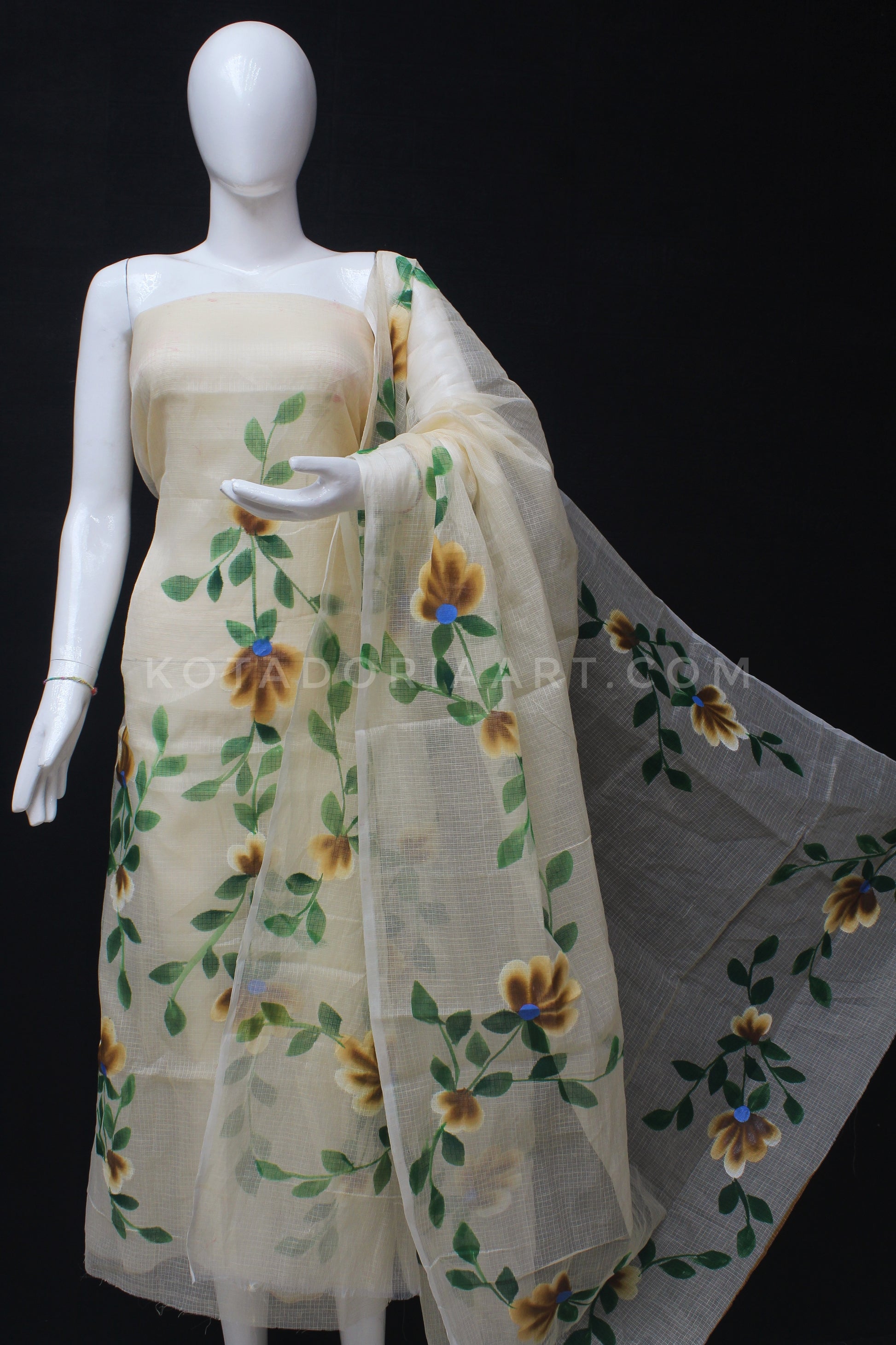 Badge Kota Doria Cotton Hand Pented Dress Material With Bottom.