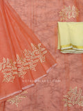 Orange Cotton Kota Doria Embroidery Work Saree With Contrast Blouse Piece