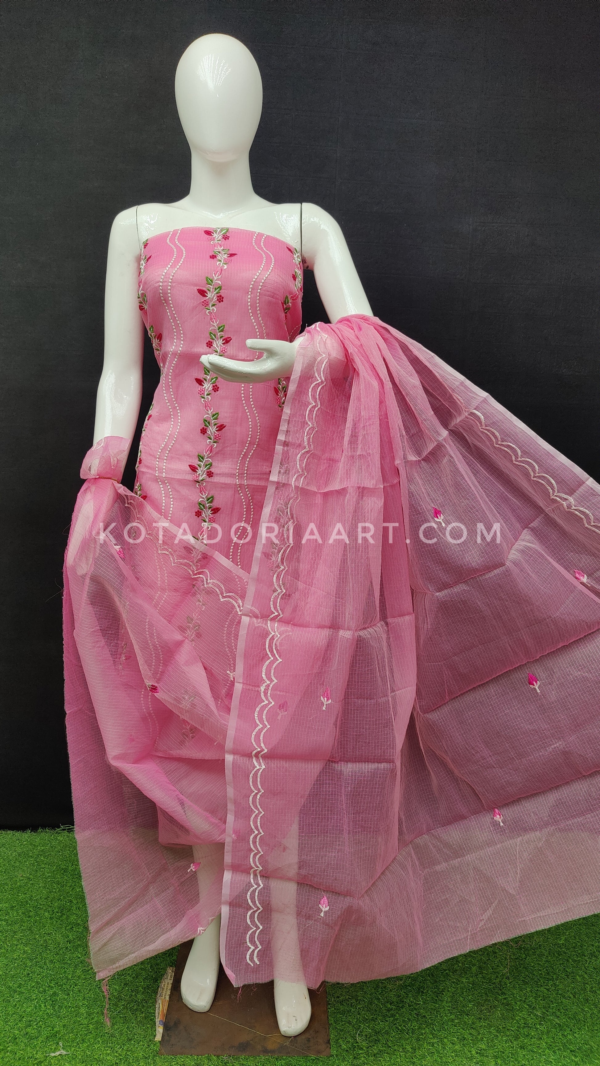 Kota Doria Cotton Embroidery Work Dress Material