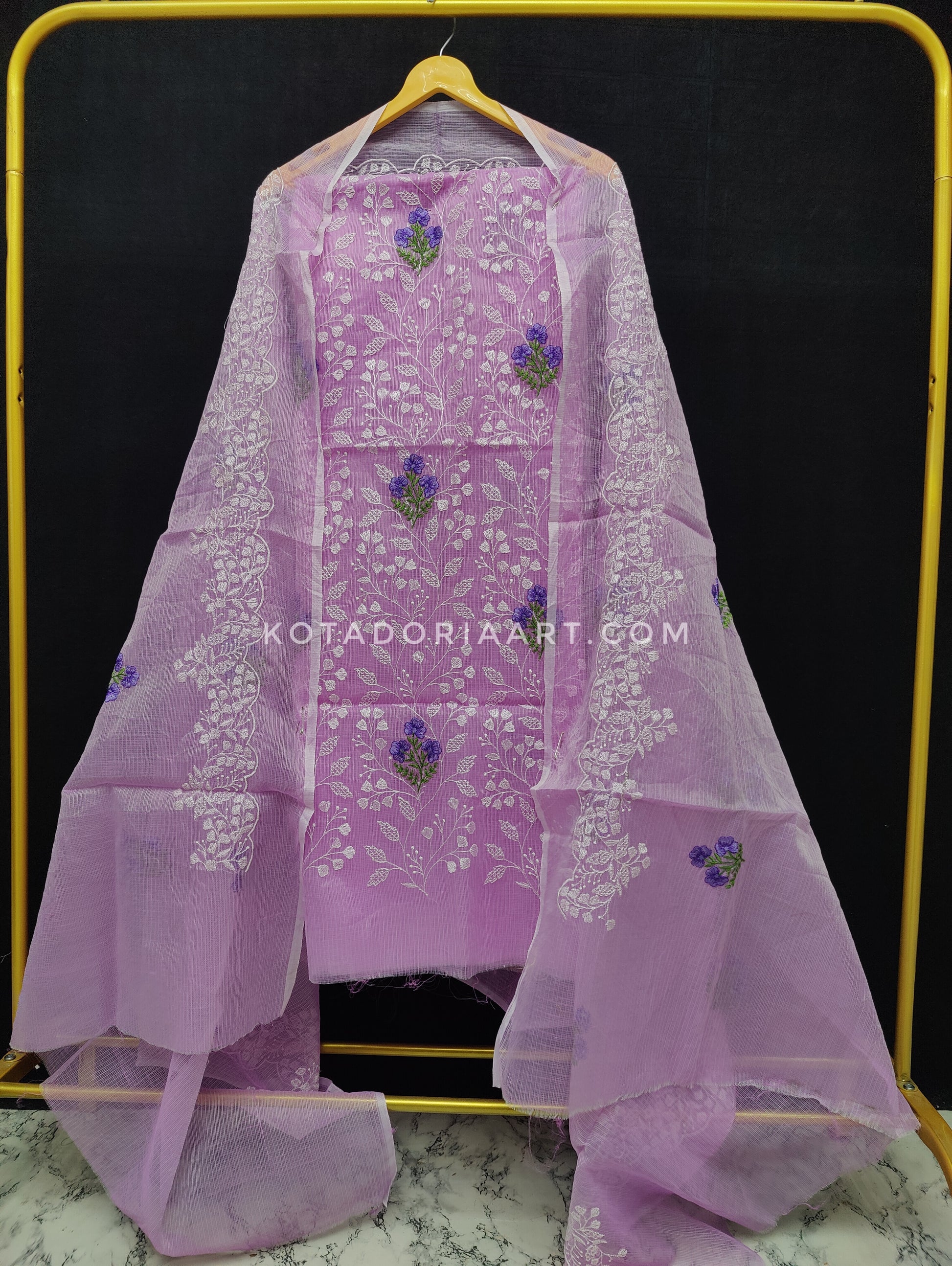 Purple Kota Doria Cotton Embroidery Work Dress Material