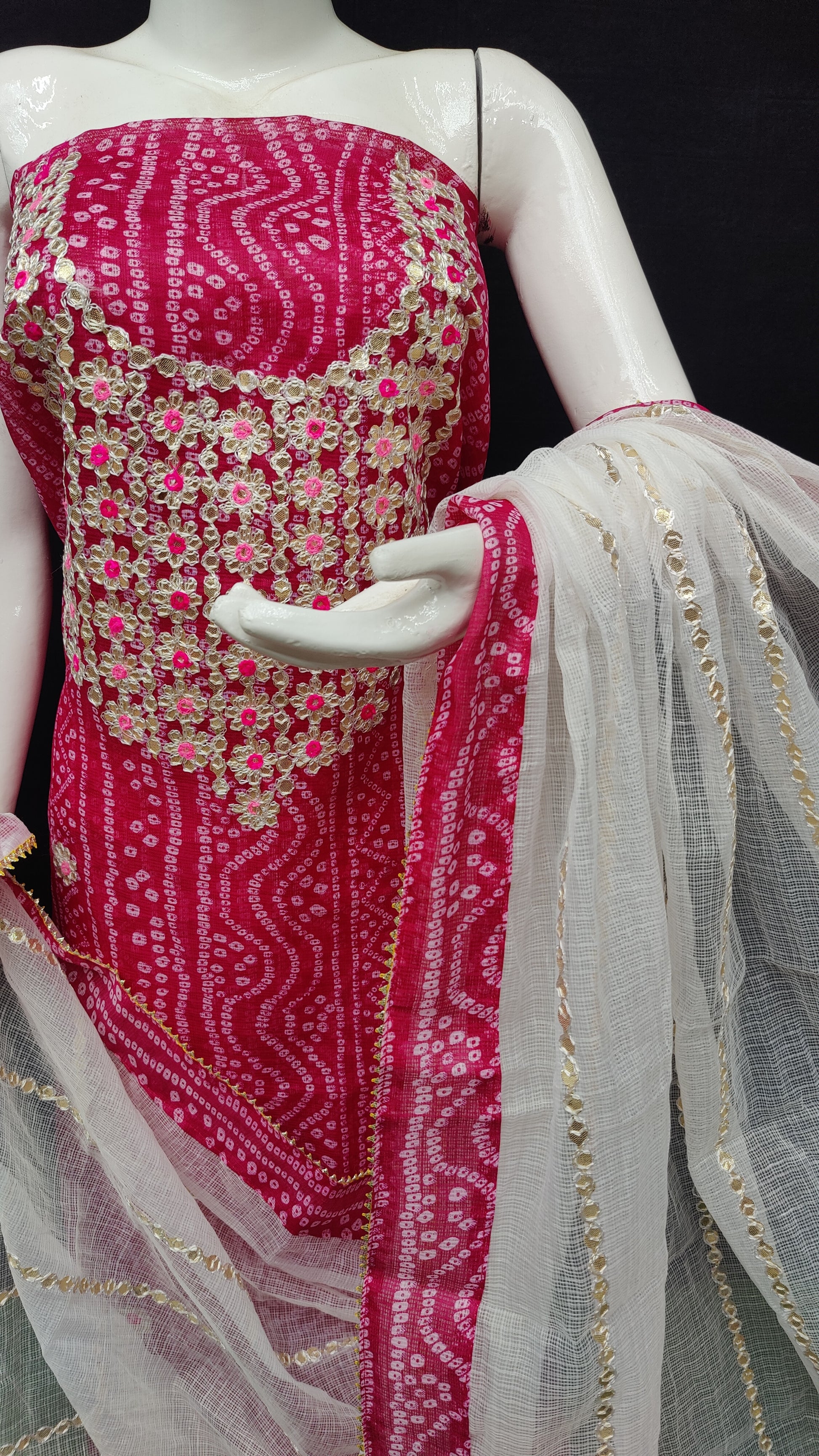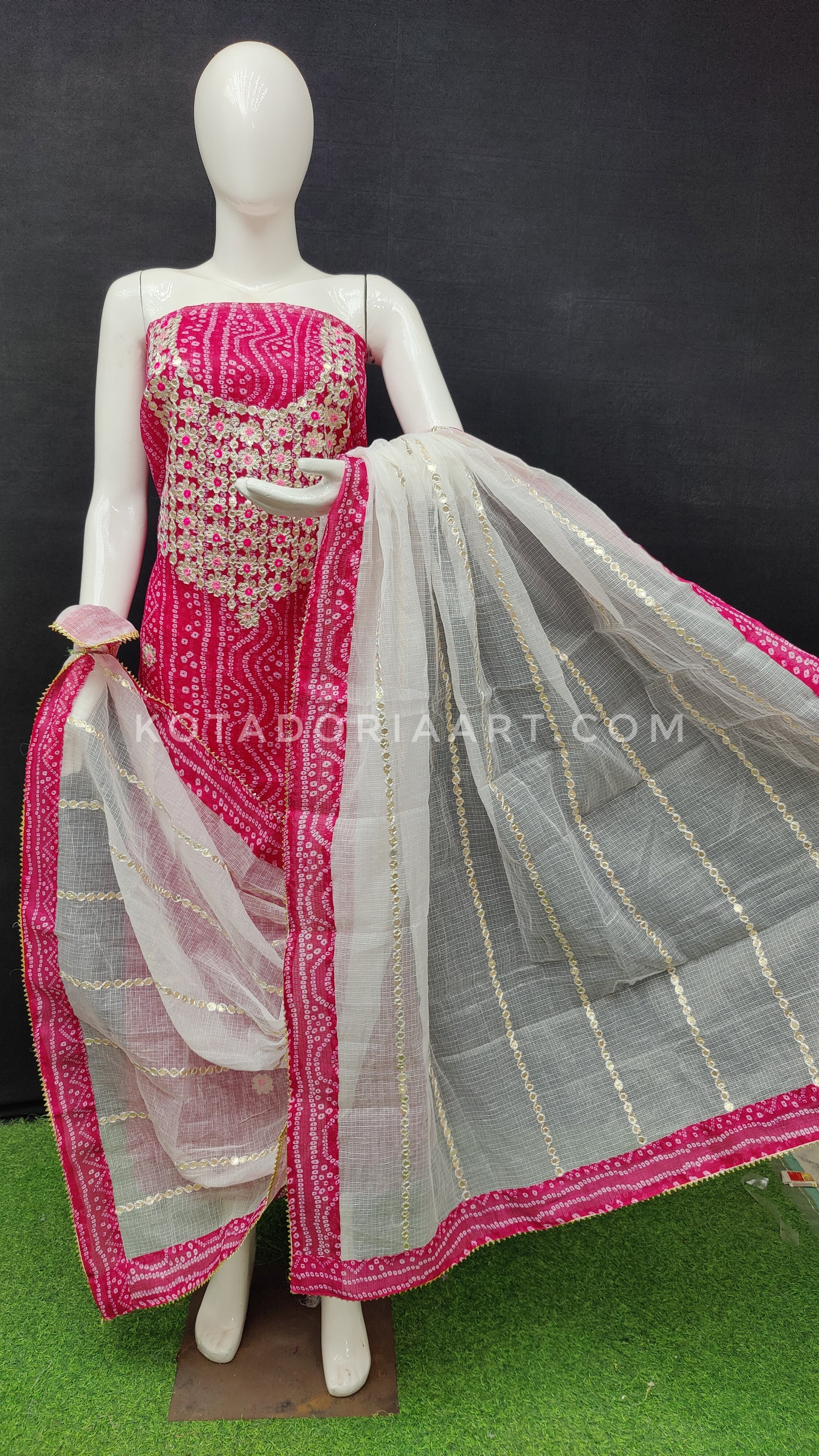 Raani Bandhej Kota Doria Cotton Gota-Patti Work Dress Material