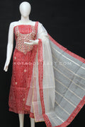Red Bandhej Kota Doria Cotton Gota-Patti Work Dress Material