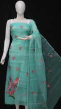 Sea Green Kota Doria Cotton Embroidery Work Dress Material